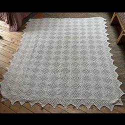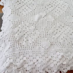 Ett vackert virkat överkast i vitt. Passar perfekt som dekoration i sovrummet eller gästrummet. Detaljerat mönster med fina kanter. 100% Bomull.