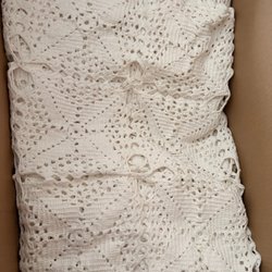 Ljusgrått, ribbat överkast. Se bilder. Överkastet är skarvat, därav annorlunda mått. Mått: C.a: 227 x 177 cm. Katt finns i hemmet.
