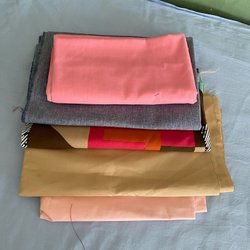 Div tyg i alla möjliga mönster o material. De flesta bara små bitar, enkel något större. Kommer från en syslöjd o har sen legat i kartong i uthus så kan behöva vädras/tvättas.