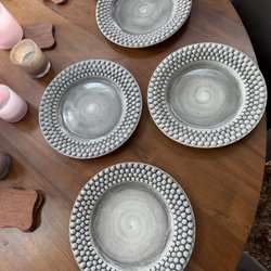 Tallrikar från Mateus. Storlek 26 cm i serien Lace, blomsterliknade mönster runt tallriken. Färgen Sand. Mycket gott skick. Nypris 395 kr/st.