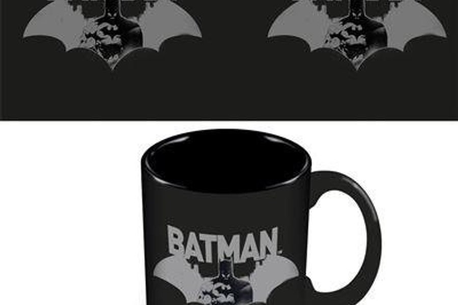 Supersnygg Batman mugg i mattsvart med silvergrått tryck.