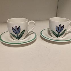 Två kaffekoppar med fat