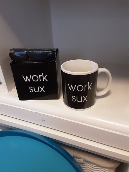 Mugg/kopp " work sux"