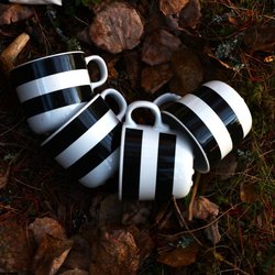 Set med McCafe muggar. Texten inuti muggarna lyder: "Kaffe, du musst jetzt sehr stark sein. #coffeetalks"