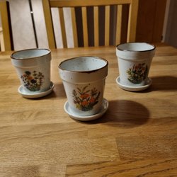 Vikt 749 gram . Alla 3 i fint skick endast guldkanten upptill på muggarna som är lite " nött" .