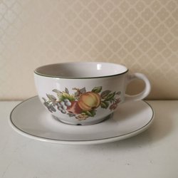 Kopp höjd 7 cm, diameter 8,5 cm. Fat diameter 17 cm.