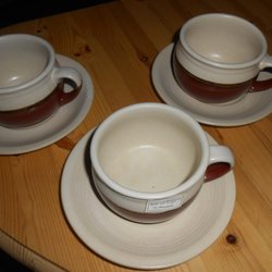 6 st Tekoppar med fat, kan även användas som kaffekoppar. 90-tal, i mycket fint skick.