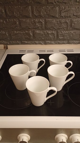 Disse hvide kopper er velegnede til varme drikke. De har et enkelt design. Tåler opvaske maskine