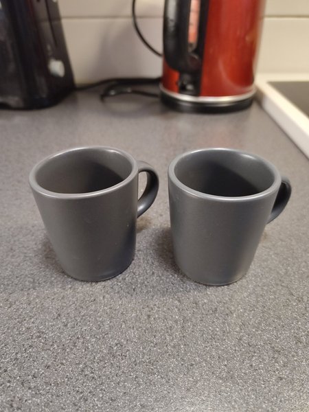 Två grå espressomuggar