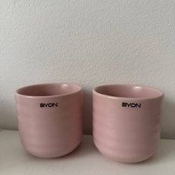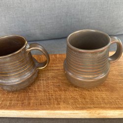Två Kitchen Basic muggar med väl tilltaget öra och tyngd i botten för stabilitet.