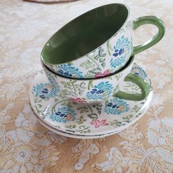 Set med tre muggar i färgerna, rosa,grönblå och svart. Varje mugg har ett hjärta på sidan.