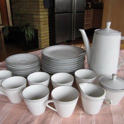 Kaffeservis med kaffekanna, gräddkanna, sockerskål, 8 kaffekoppar och 11 fat.