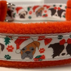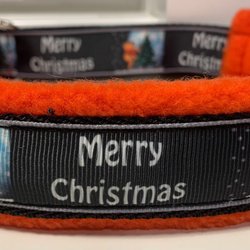 Nytt ställbart hundhalsband Jul fodrat med skön fleece inv mått 30-36cm och 3,5cm brett