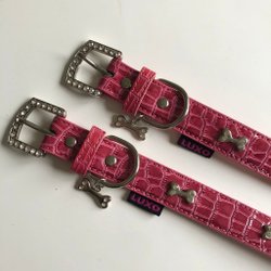 Snyggt koppel i vitt. Kan inte avgöra om det är i skinn eller konstskinn. Mjukt och behagligt att hålla i. Hakar i båda ändarna, så det går att fästa lite hur man vill för att få olika längd på kopplet. Har själv köpt det begagnat men hakarna var för grova för min lilla hund, så skulle säga det passar bättre på en grövre ras.