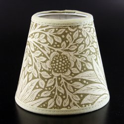 Lampskärm tillverkad i anrik svensk fabrik. Mycket fin kvalitet. Tyget Golden Lily är ritat av William Morris, tillverkat hos Morris Co - högsta kvalitet på tillverkningen. Höjd 10 cm. Övre diameter 6,5 cm. Nedre diameter 11 cm. Klofäste. Se övriga auktioner. Vi samfraktar så förmånligt som möjligt.