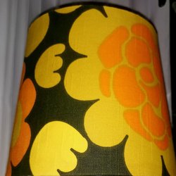 Nytillverkad cylinderformad lampskärm i retrotextil från 70-talet