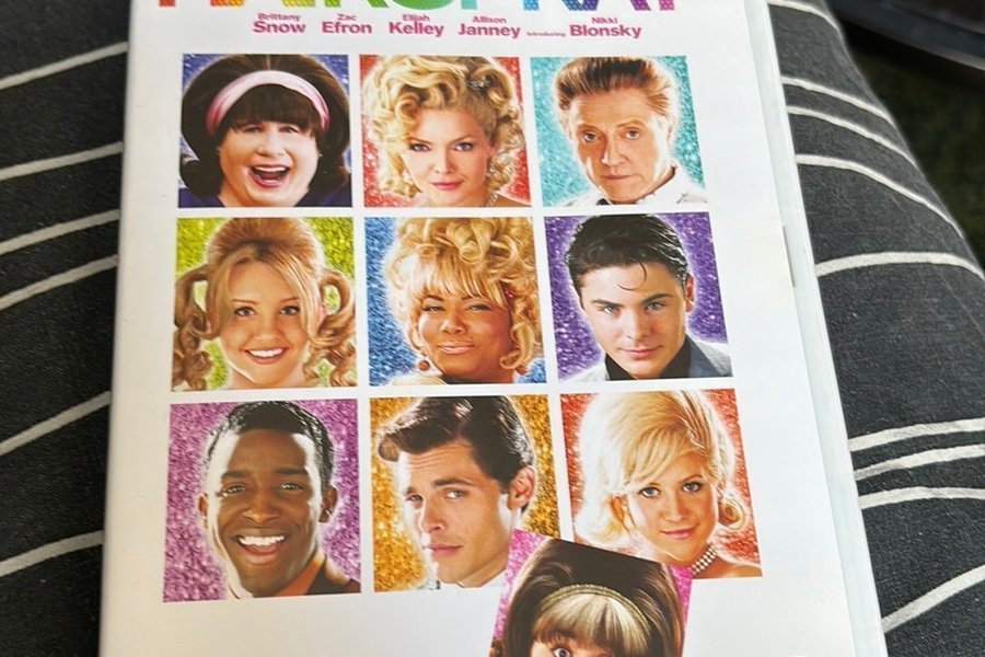 DVD-film Hairspray med John Travolta, Michelle Pfeiffer, Christopher Walken, Amanda Bynes, James Marsden och Queen Latifah.