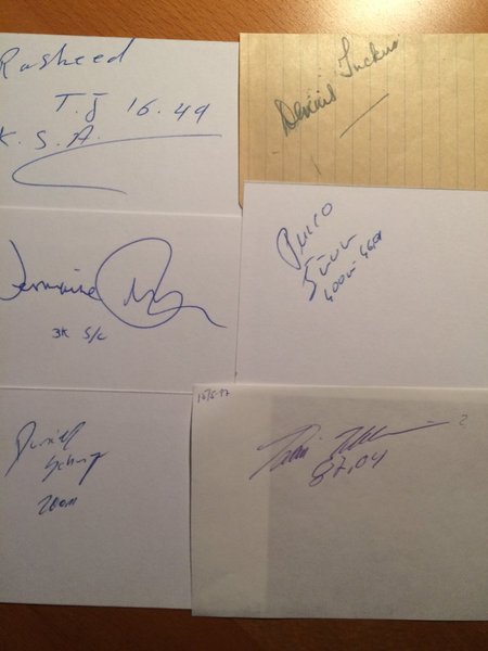 Kommer från autografblock och Svenska Friidrottsgalor.