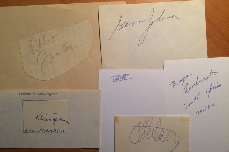 Kommer från autografblock och Svenska Friidrottsgalor.