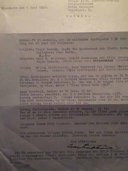 Skrivet från Svenska Cykelförbundet till Motala AIF