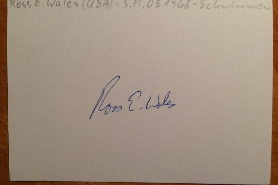 Ross Elliott Wales (born October 17, 1947) is an American former competition swimmer and Olympic Games medalist. He represented the United States at the 1968 Summer Olympics in Mexico City, where he received a bronze medal in the men's 100-meter butterfly, finishing behind compatriots Doug Russell and Mark Spitz.