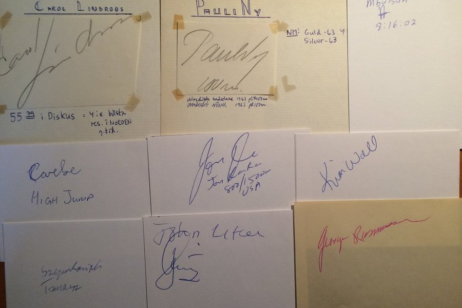 Kommer från autografblock och Svenska Friidrottsgalor.