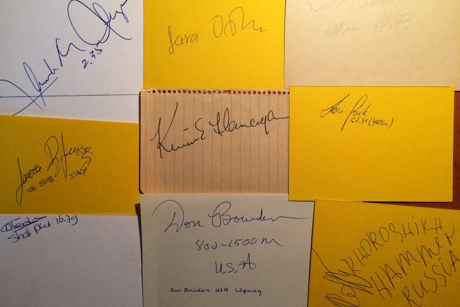 Kommer från autografblock och Svenska Friidrottsgalor.