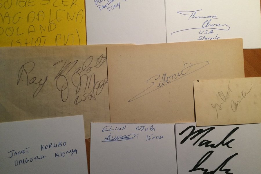 Kommer från autografblock och Svenska Friidrottsgalor.