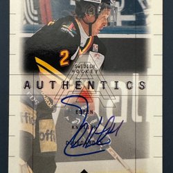 Autografkort från Canada vs The World Series av In The Game, Inc. Kortet har en autentisk Phil Housley autograf. Autenticiteten av denna autograf garanteras av In The Game, Inc.