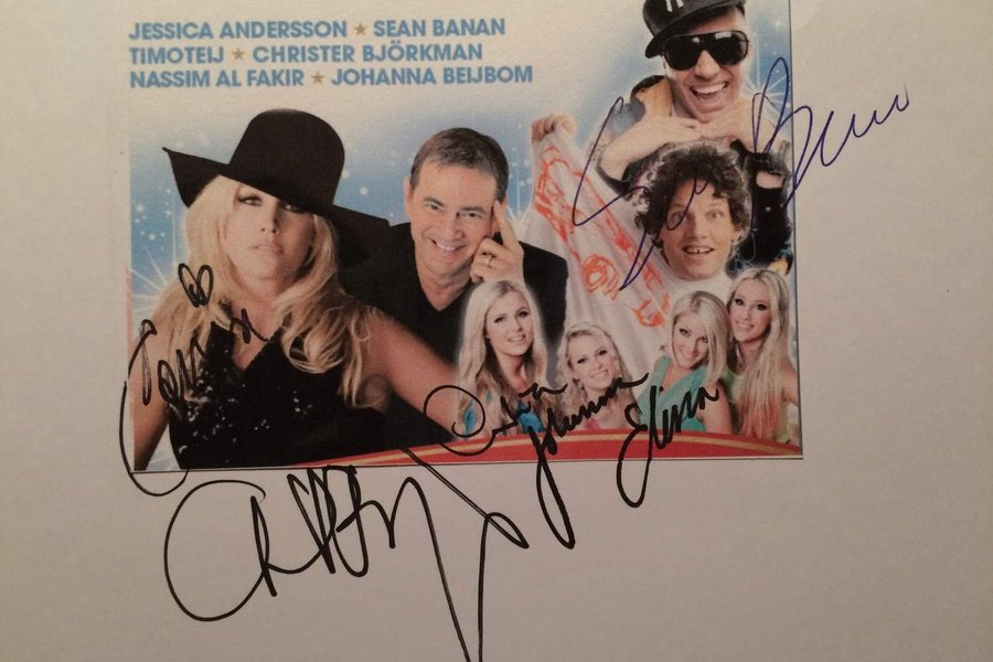 Signerat av Jessica Andersson, Christer Björkman, Sean Banan och av tre från Timotej.
