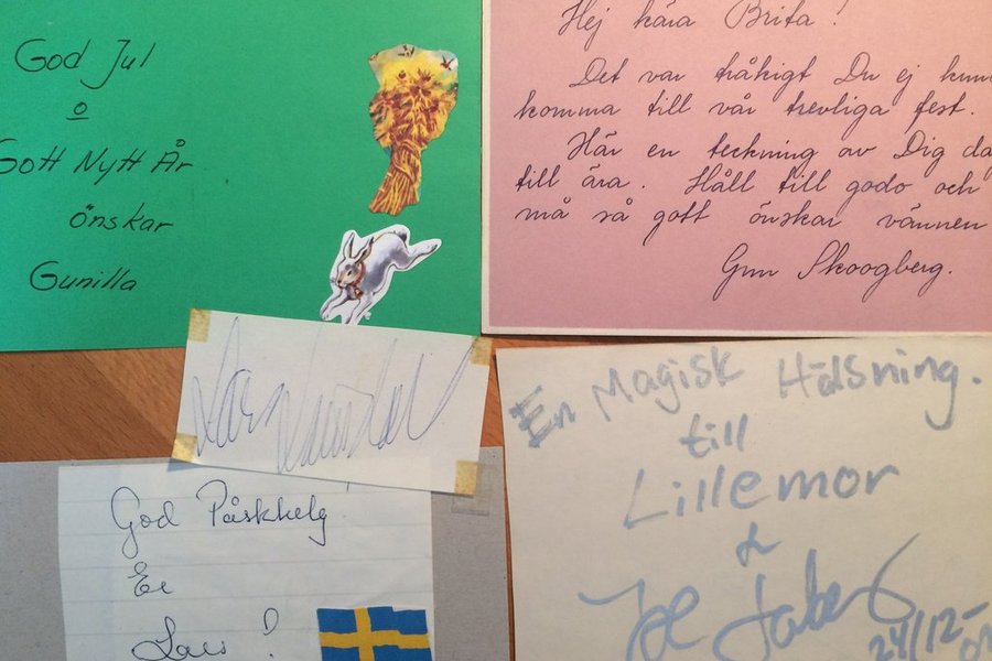 På papper, brev,nerklippta eller hälsningar