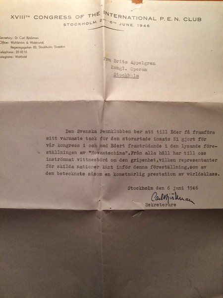 Brev, daterat 6 jun 1946, lite naggat i kanterna m.m.