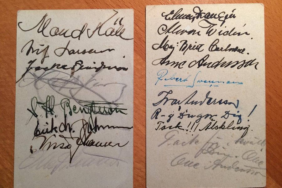 På baksidan av visitkort från Axelsons Damfrisering i Västanfors