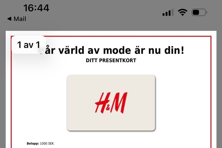 Digitalt presentkort från H&M laddad med