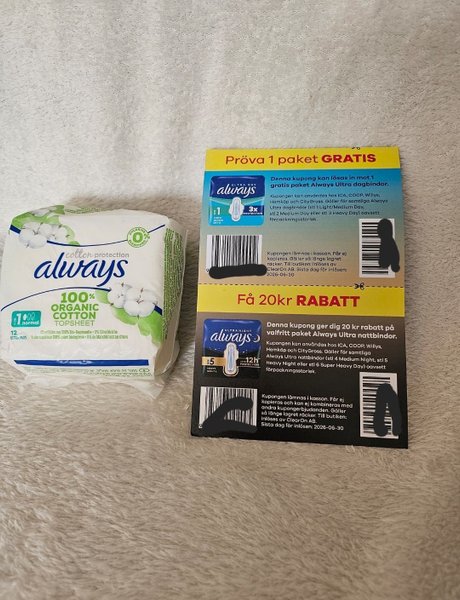 Ett valfeitt paket gratis Always Ultra Dagbindor.