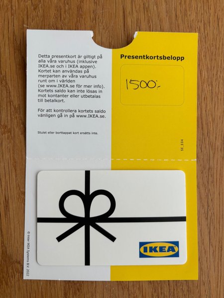 IKEA presentkort värde 1500 kr
