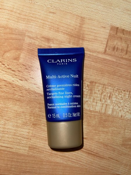 Clarins Multi-Active Nuit, en revitaliserande nattkräm som motverkar fina linjer. Passar normal till kombinerad hy. Innehåller 15 ml.