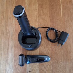 Rakapparat av märket Feiyba. 3-bladig elektrisk rakapparat är en smidig och effektiv roterande rakapparat med USB-laddning. Den är idealisk för både skäggtrimning och näshårstrimning.