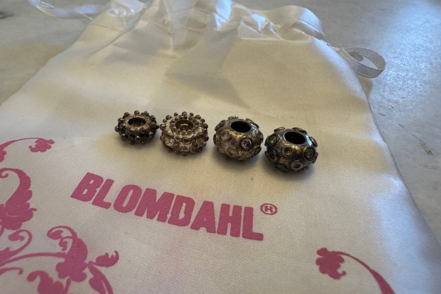 Fyra stycken berlocker från Blomdahl. Perfekt för att skapa personliga smycken.