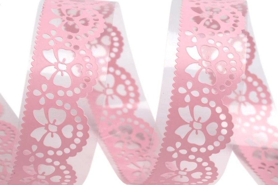 Rosa design-tejp med fin spets motiv. Perfekt för scrapbooking, dekorering och andra hobbyarbete.