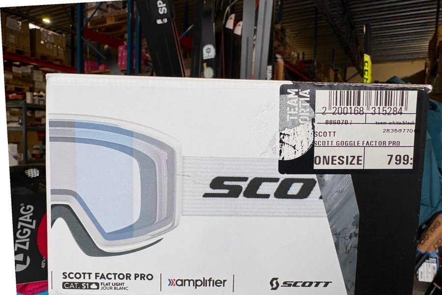 Scott Factor Pro skidglasögon. Färg: team white/black. Onesize. Cat. S1, flat light jour blanc, amplifier. Finns en defekt på baksidan och därav priset.