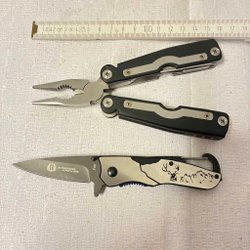 Ett multiverktyg med flera funktioner som kan vara användbart i olika situationer. Inkluderar bland annat kniv, såg, fil, skruvmejsel och tång enligt bilder. Total längd är ca 14,5cm. Kniv verkar oslipad.