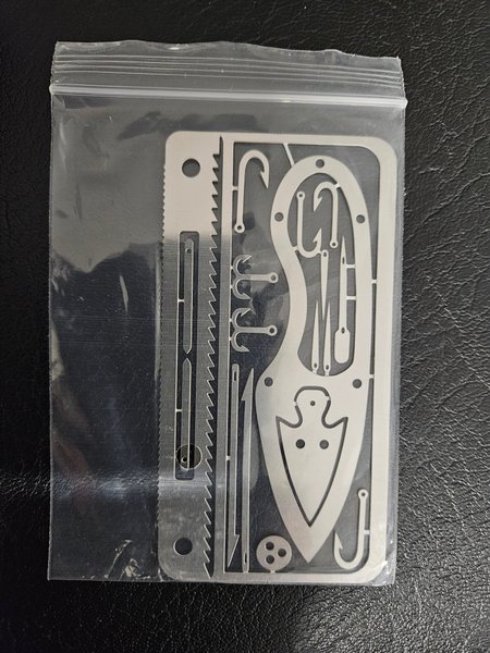 Överlevnadskort tryck bara ut det du behöver. Skitkul utmaning med barnen att ex överlevnsdsfiska dvs tälja spö, ta lina, tryck ut krok, leta bete och fiska. Lätt att bära med sig. Samfraktar gärna.