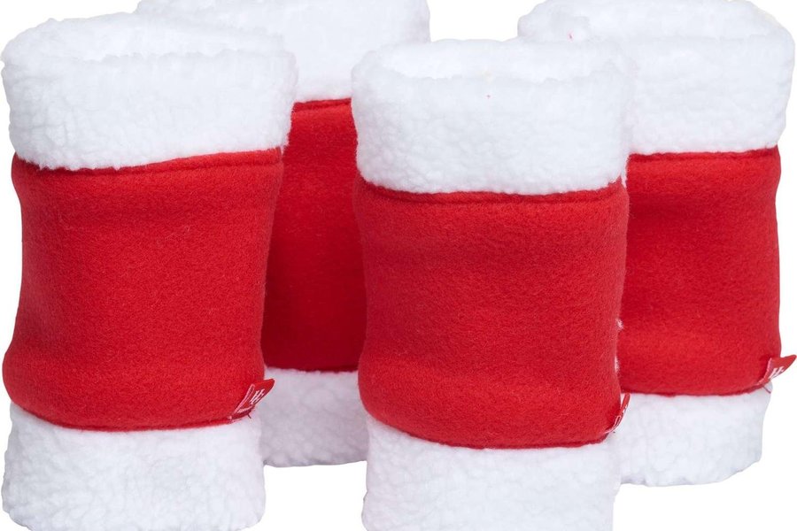 Teddybenskydd perfekta för julfirandet! Leg wraps som fästs på plats med kardborre, och kan på sätt justeras i storlek.
