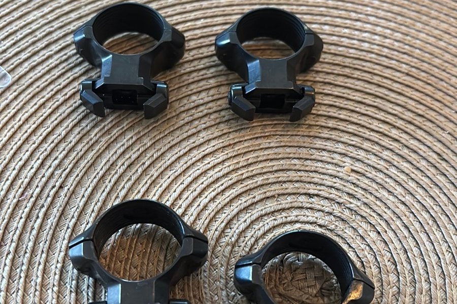 Tror de är leuopold ringarHöga och mellan fästes ringar 25mm dia använda men helt okej skick