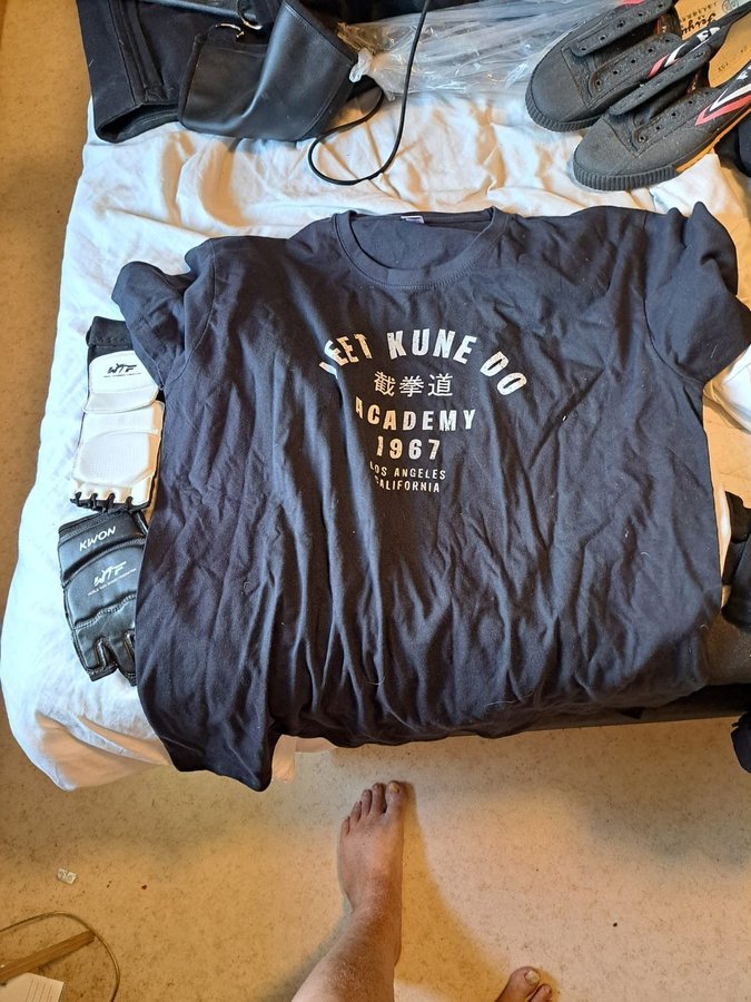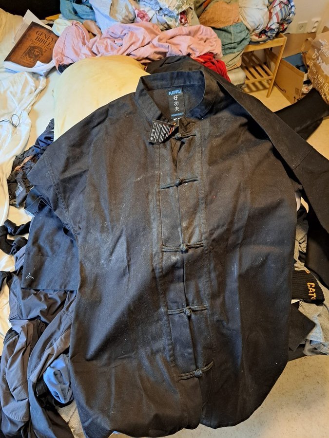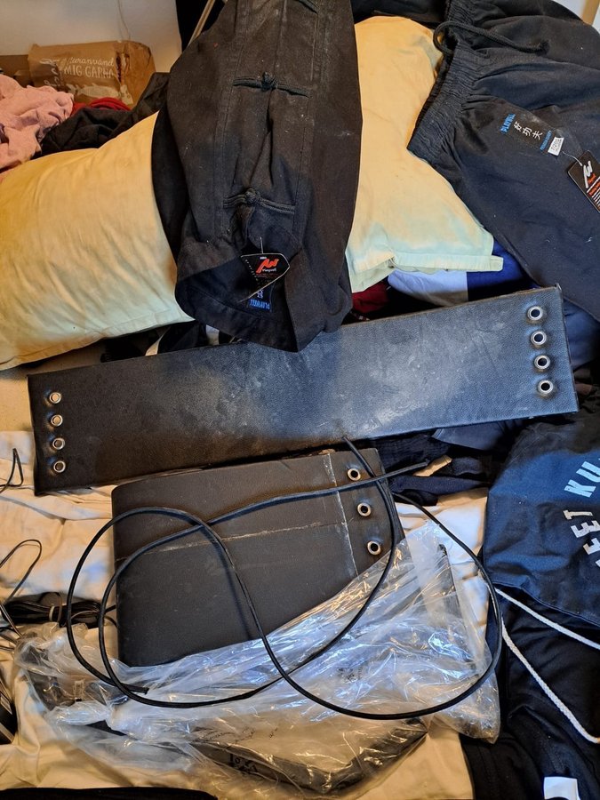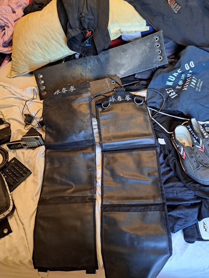 Hej säljes diverse wingchung kungfu saker ny pris 4000 köpt i england ej andvändt sparing handskar kungfu sparrings skor kungfu 2 thirt jeet kune do påse jeet kune do 3 stk hänga på väggen slag säckar med pärlpåsar intuti utrustning till wingchung dummy dock wing chung kungfu dräkt storlelk xl