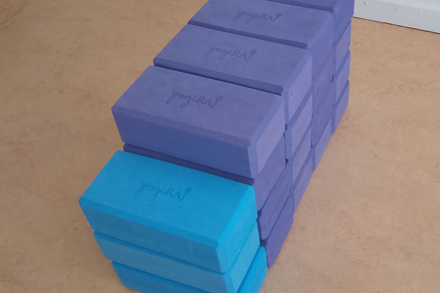 19 stycken Yogablock från Yogiraj. Dessa block är tillverkade av skum och är lämpliga för yogaövningar. De kommer i två färger, lila och blå.