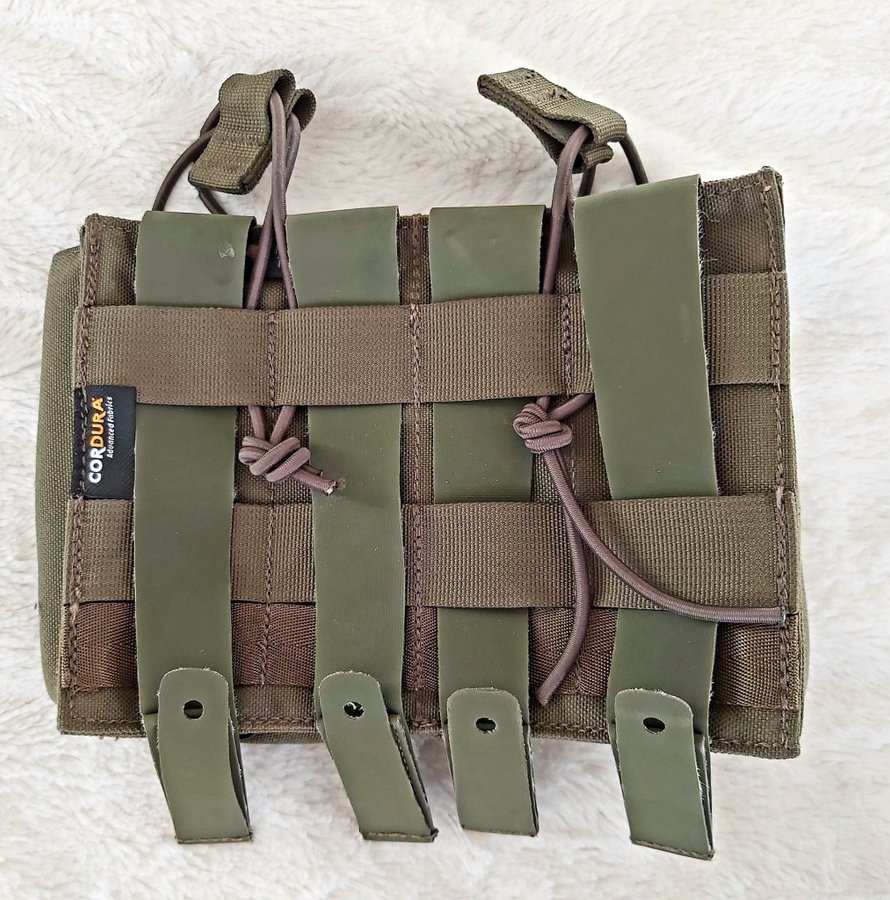 Tasmanien tiger olivgröna magasinfickor. Praktiska fickor för Molle-system, tillverkade av slitstark Cordura. Fickorna har flera fästen och är designade för att enkelt fästas på västar eller ryggsäckar. Passar bra för både friluftsliv och taktiska aktiviteter.