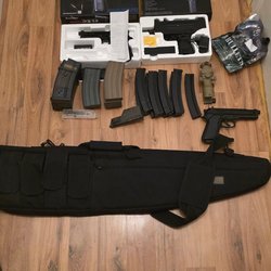 Säljer ett paket med airsoft tillbehör. Innehåller 2 påsar Specna Arms BBs, en flaska Frysen Airsoft BBs, CO2 patroner och hållare till pistol!??
