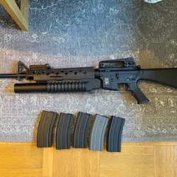 Skickar även med alla orginal delar som jag bytt ut (pistol grip, handguard, flamdämpare etc, kolv etc.)
